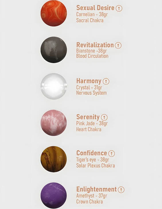 Each stone is selected for its unique properties and smooth finish, offering a comfortable and refined experience. The included silicone cord allows for secure placement and easy handling, while the ergonomic shape supports effective use during Kegel exercises.