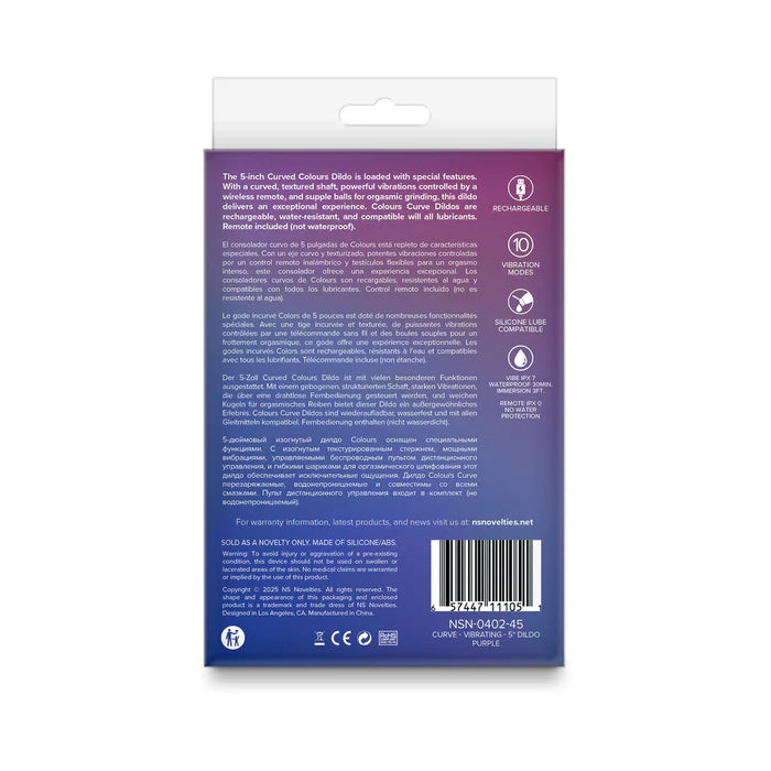 Unleash waves of sensual pleasure with the Colours Curve Vibrating 5-inch Dildo in Purple! π Designed to deliver pure ecstasy, this curvaceous beauty knows exactly how to please. With its ergonomic, curved shaft and textured ridges, itβs built to find and stimulate your G-spot or P-spot effortlessly. ππ¦