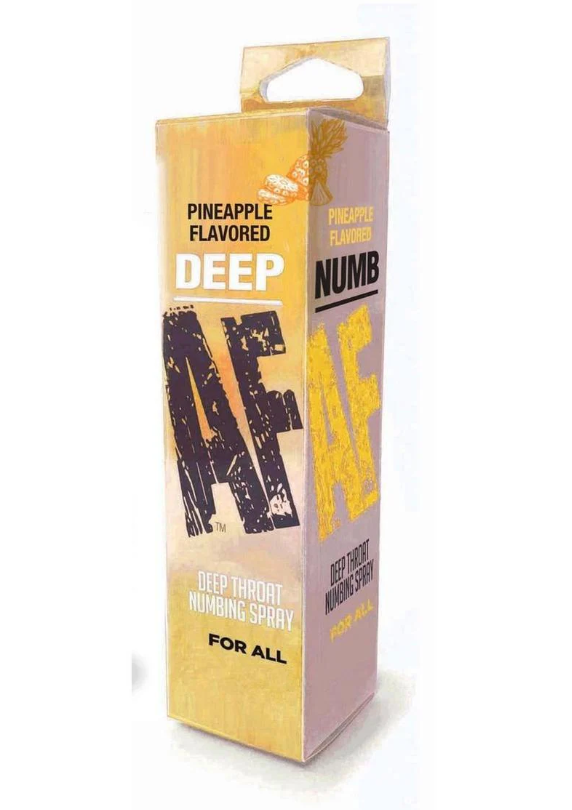 The Deep AF Pineapple Numbing Spray is designed to support comfort and confidence with a fast-acting oral formula. Infused with a tropical pineapple flavor, this spray delivers a refreshing taste while providing targeted desensitizing support where you need it most.