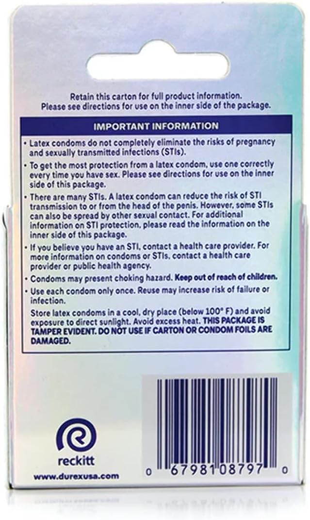 Pre-lubricated and teat-ended for a secure, comfortable fit, each condom is packed the right way up for fumble-free fun. And because every single one is tested 5X for strength and durability, you can focus on intimacy while Durex takes care of safety. 💕