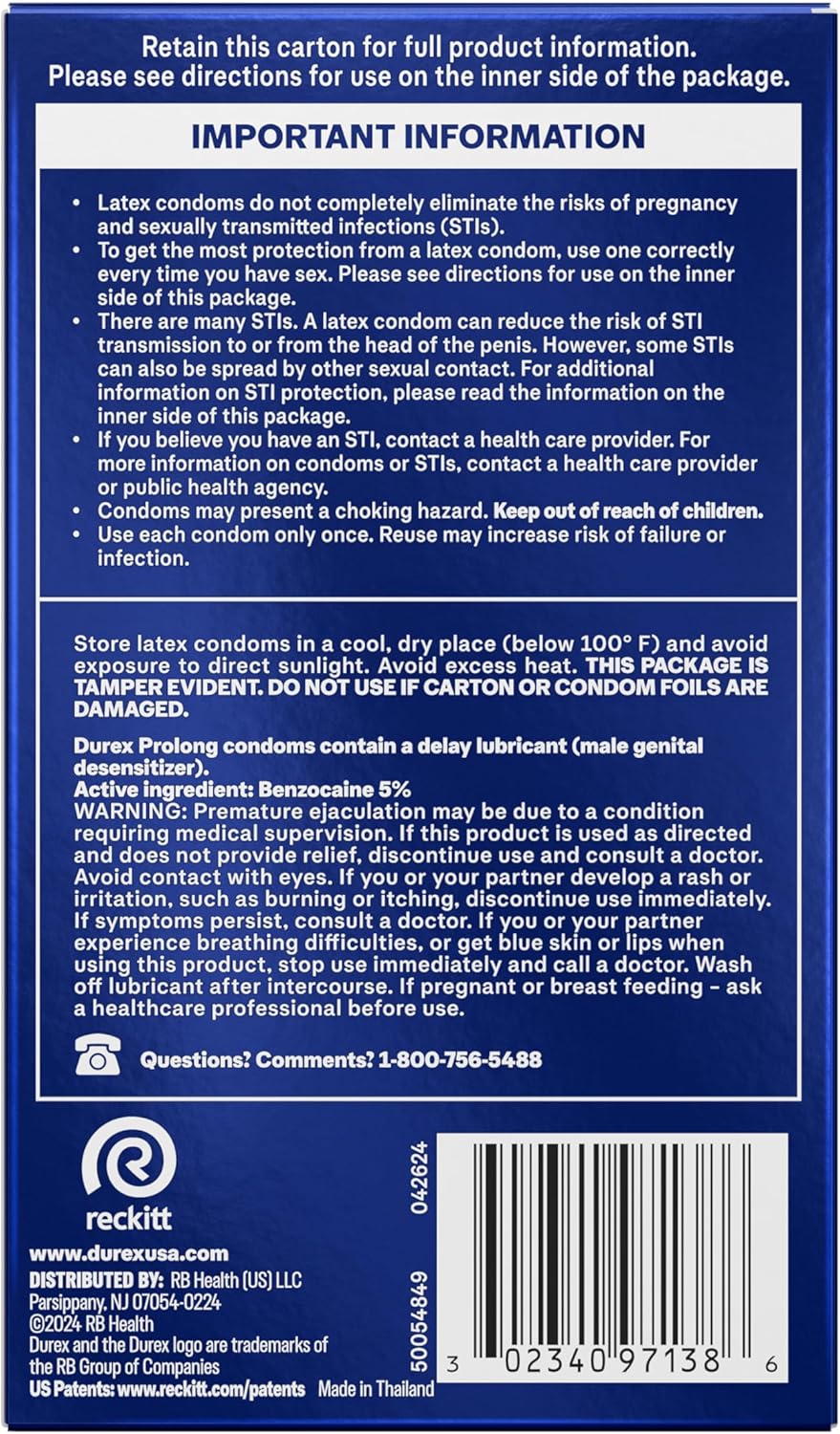 Durex Prolong Condoms (12 Pack) – Climax Control for Longer Pleasure
