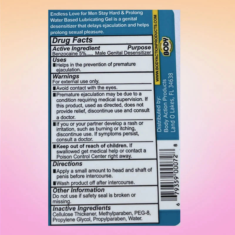 Endless Love For Men Stay Hard & Prolong Lube 1.7oz