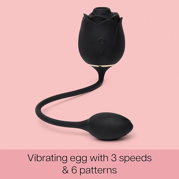 The iconic black rose head features strong suction with 10 intensity levels, inspired by the classic Hearts and Roses design. Paired with a powerful vibrating egg offering 9 distinct modes, Dark Blushing Rose lets you explore endless combinations until you find your perfect rhythm. Crafted from silky body-safe silicone and fully rechargeable with magnetic charging, it’s made for sensual exploration—solo or shared.