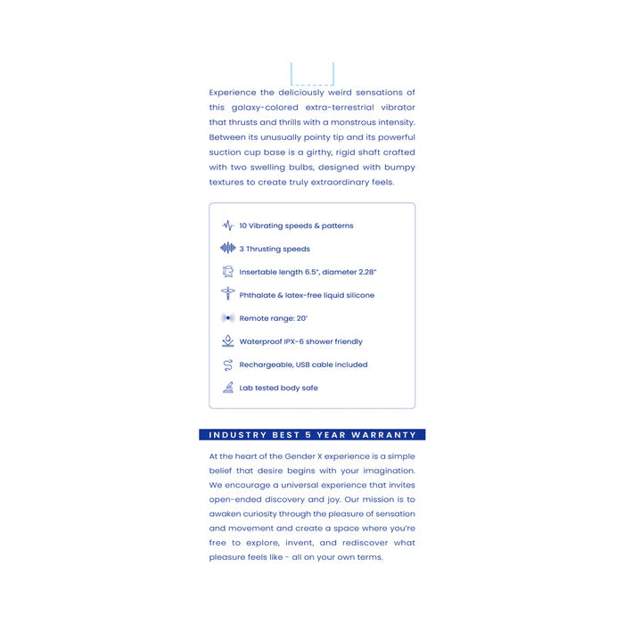 The Gender X Wildest Dreams Multicolor is a bold and imaginative device designed to deliver powerful performance with a unique, sculpted design. Featuring a striking galaxy-inspired color pattern, this piece combines visual appeal with advanced functionality for a dynamic experience.