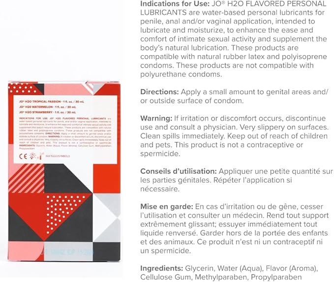 H2O Original: Glycerin, Water (Aqua), Cellulose Gum/Carboxymethylcellulose, Methylparaben, Propylparaben