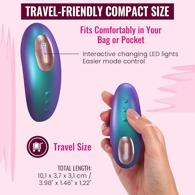Dreamer’s signature flapping design delivers a memorable cunnilingus-style effect. The soft silicone mouth hugs the clitoris, amplifying sensations created by rhythmic up-and-down membrane movements. With 5 flapping modes and 8 intensities per mode, you get 40 blissful combinations. Hand the LED-backlit remote to your partner—or activate Sense Touch technology, where simple skin contact turns it on and lifting it away turns it off. Effortless, intuitive, and fully waterproof for carefree play.