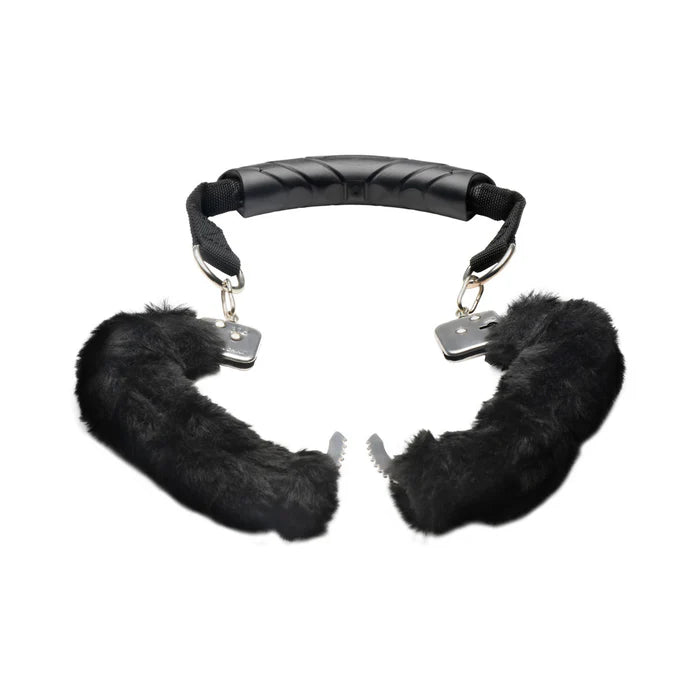 Upgrade your bondage play with the Master Series Furry Handcuffs with Handle 🔒✨. Combining soft faux fur padding with a strong metal core, these cuffs bring comfort, luxury, and kink together. The rubber-coated handle makes leading or controlling your partner effortless, while the plush texture adds style and indulgence to restraint play.