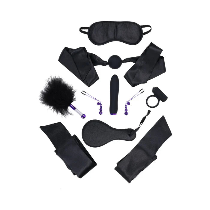 Merci VIP Room 10-Piece BDSM Set β Black Satin Pleasure Kit