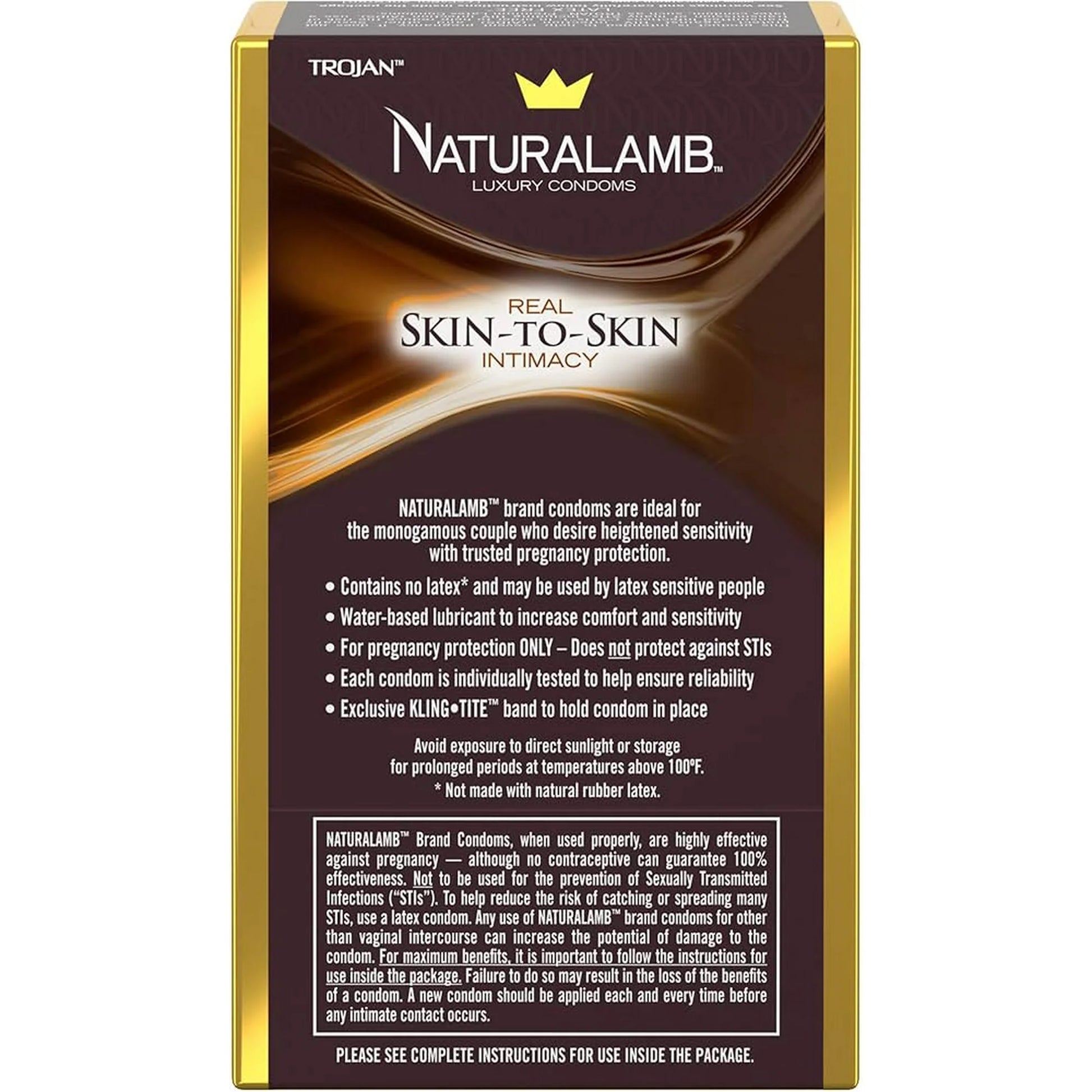 Exclusive Kling-Tite® band ensures a secure fit, and each condom is individually tested for reliability. Please note: Naturalamb condoms provide pregnancy protection only—they do not protect against sexually transmitted infections (STIs).