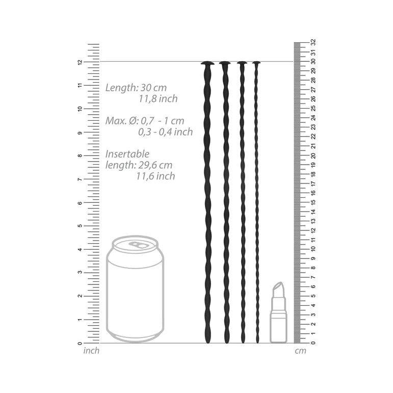 Ouch! Urethral Sounding Advanced Silicone Spiral Screw Plug Set Black 7 mm / 8 mm / 9 mm / 10 mm