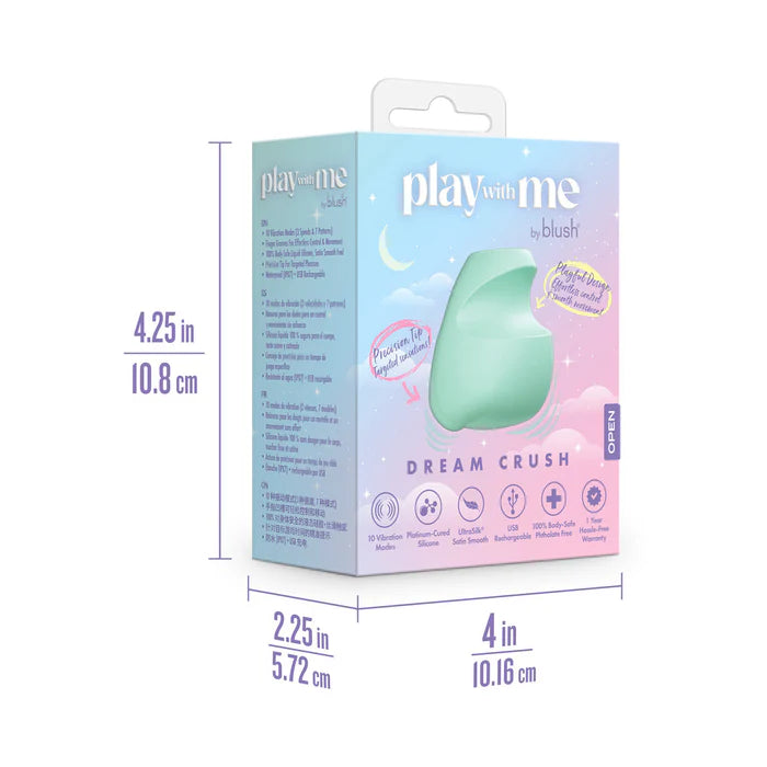The Play With Me Dream Crush Green is the irresistible vibrator you’ll keep coming back to. Sculpted for precision and designed to sweep you away, this vibe features 10 captivating vibration modes—with 3 speeds and 7 pulse patterns—moving effortlessly from subtle teasing pulses to deep, breathtaking waves of pleasure.