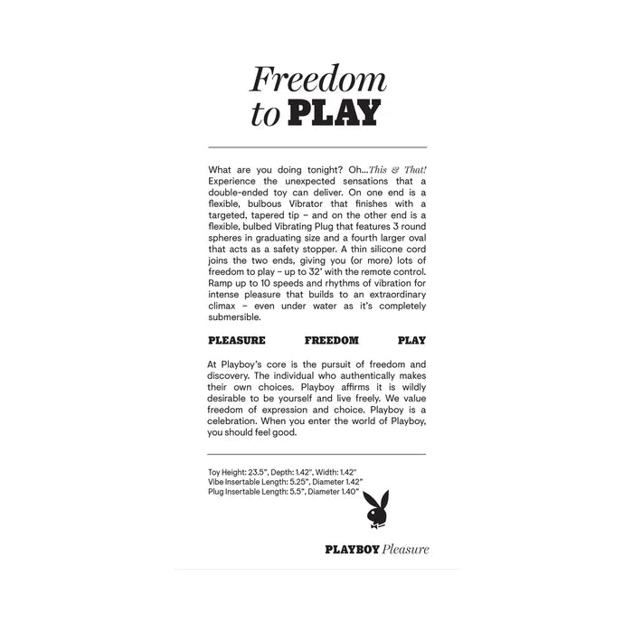 Its curvy shape hugs your body while the silky-smooth finish glides effortlessly with lube. Control it with ease using the included remote—perfect for solo play or handing the power to a partner for naughty teasing games. Stylish, discreet, and oh-so-sexy, this Playboy vibe turns every night into a delicious indulgence.