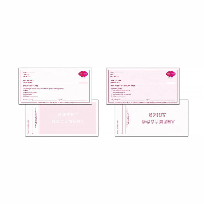 Sex Checks: Spicy or Sweet is the ultimate relationship treat — a flirty booklet packed with 60 reimbursable checks designed to help couples explore romance, pleasure, and playful adventure in the most fun, pressure-free way.