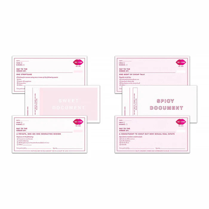 Each check includes fill-in-the-blank spaces and fun check-box prompts that let you customize every promise. Use them to flirt, reconnect, spark playfulness, or build anticipation for bedroom magic. Whether you’re shy, adventurous, or somewhere in between, this booklet adds a fun spark to any relationship.