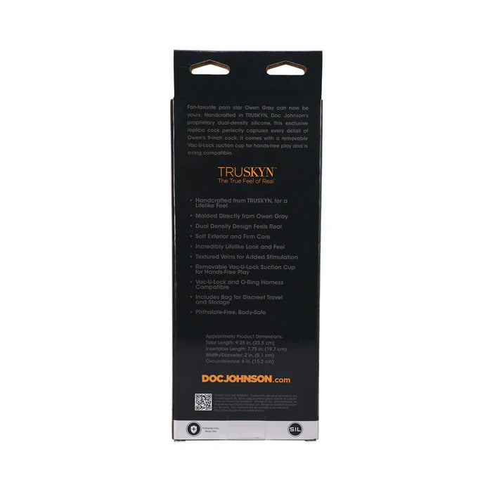 Bring home the star power of Owen Gray with this ultra-realistic Signature Cocks 9-Inch TRUSKYN Silicone Dildo from Doc Johnson. Every curve, vein, and detail is faithfully molded from Owen himself, capturing his most iconic asset in dual-density TRUSKYN silicone—soft on the outside, firm at the core—for the most lifelike feel possible.