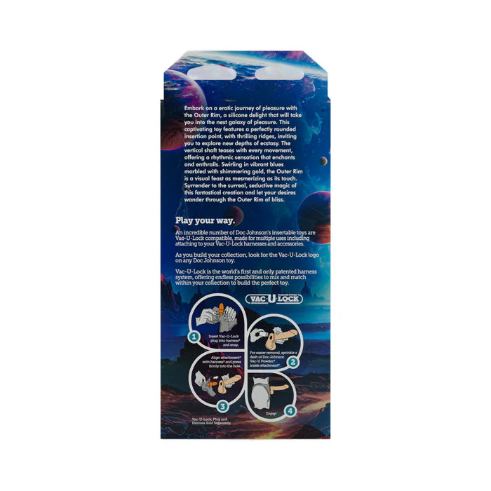 The vertical shaft design delivers a hypnotic, pulsing feel with every movement, while the vibrant blue and shimmering gold marble pattern turns each glance into an otherworldly visual experience. Sculpted for those who crave fantasy realism with elegance, Outer Rim blends sensual artistry with perfect functionality.
