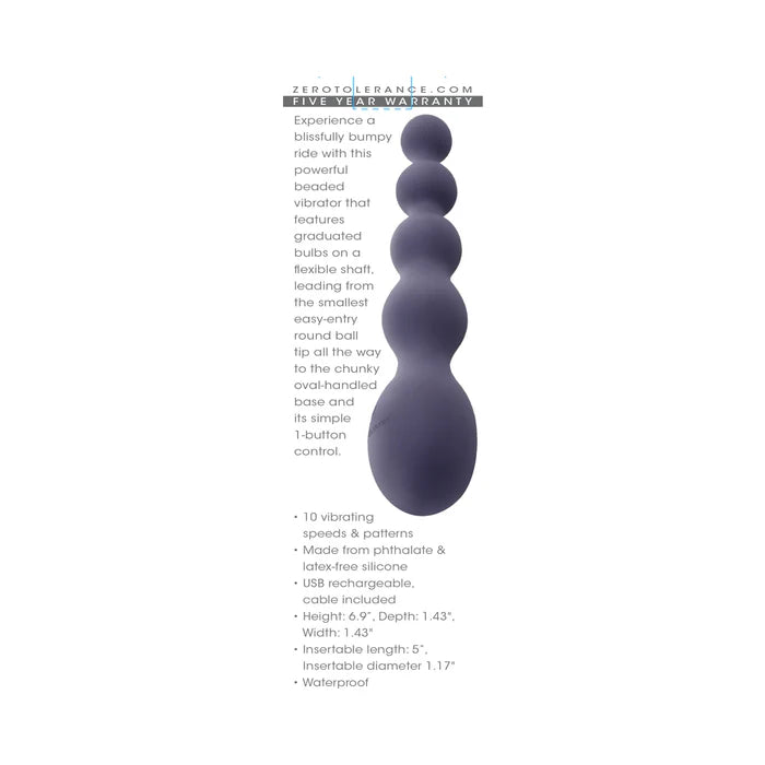 Take your backdoor play to new heights with the Zero Tolerance Rumpy Bumpy Rechargeable Anal Vibrator in Purple π. Designed with a graduated beaded shaft and a beginner-friendly rounded tip, this vibe gives you smooth entry followed by a satisfying progression of bumps that build intensity with every move.